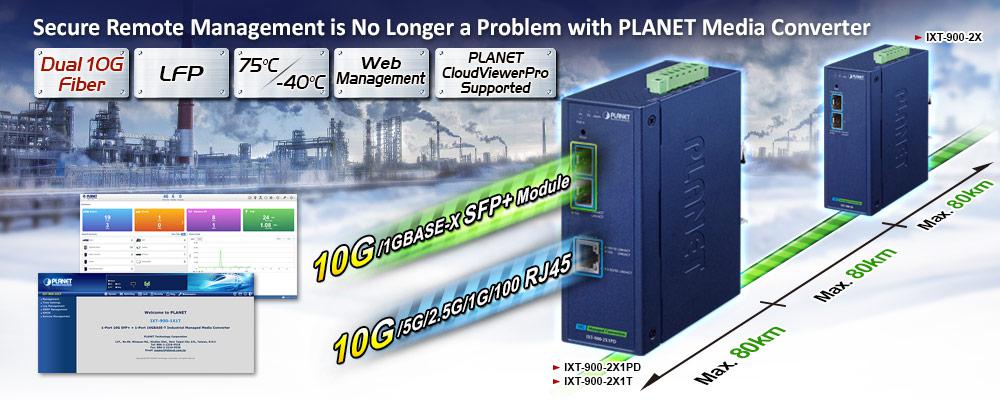 La serie de convertidores de medios industriales de alto rendimiento IXT-900 de PLANET es resistente al medio ambiente ahora que viene con una temperatura de funcionamiento extendida que va de -40 a 75 grados Celsius, diseñada para entornos desafiantes. Esta serie cuenta con una gestión segura independiente, lo que establece un nuevo estándar para la gestión y el monitoreo remotos de empresas y telecomunicaciones. La serie industrial IXT-900 permite una gestión remota sin inconvenientes a través de una interfaz web intuitiva, una interfaz de línea de comandos (CLI) y un protocolo SNMP, lo que facilita el monitoreo y la configuración sin esfuerzo desde cualquier ubicación.