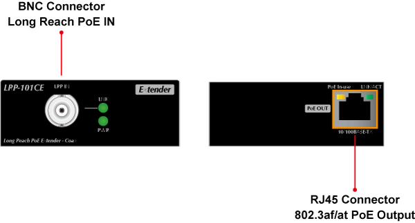 • LRP-101CE: 1 puerto 10/100TX PoE PSE + 1 puerto coaxial extensor PoE de largo alcance