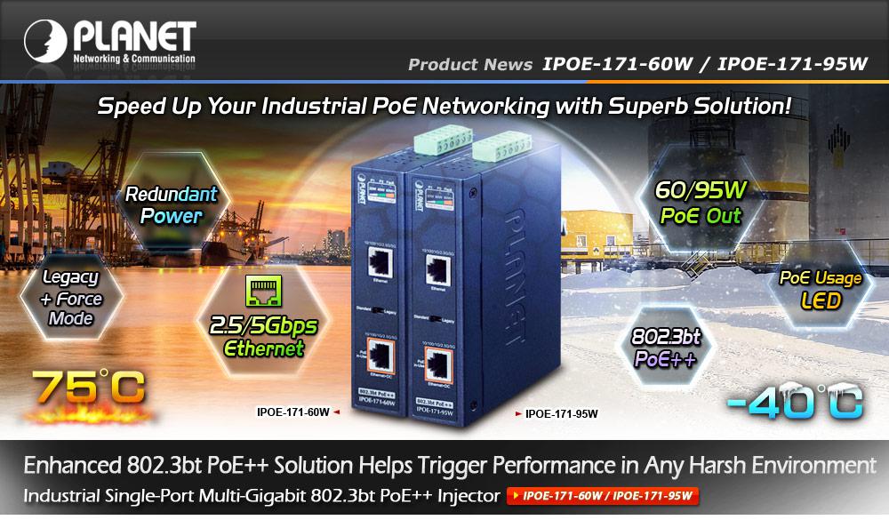 Hoy en día, la demanda de PoE se expande desde aplicaciones comerciales a muchas redes críticas en entornos hostiles. La serie IPOE-171 será una de las soluciones ideales que brindan un alto nivel de inmunidad contra interferencias electromagnéticas y fuertes sobretensiones eléctricas típicas de los entornos que se encuentran en los pisos de las plantas o en los gabinetes de control de tráfico en las aceras. La serie IPOE-171 puede funcionar de manera estable en un rango de temperatura de -40 a 75 grados C, lo que permite a los usuarios aplicar cómodamente el dispositivo en casi cualquier ubicación de la red. La serie IPOE-171 también está equipada con una carcasa metálica compacta con estándar IP30 que permite el montaje en riel DIN o en la pared para un uso eficiente del espacio del gabinete.