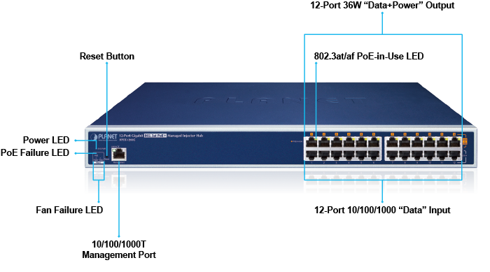 La serie de concentradores de inyectores PoE administrados HPOE recientemente mejorada de PLANET, una solución PoE administrada y rápida de alta densidad y montable en bastidor, está diseñada para actualizar perfectamente una infraestructura de red existente al sistema de red IEEE 802.3at Power over Ethernet Plus sin reemplazar el conmutador Ethernet existente. Las funciones de administración de la serie de concentradores de inyectores PoE administrados HPOE se han mejorado al nuevo estilo web que incluye los protocolos TLSv1.2 y TLSv1.3, el servicio PLANET DDNS/Easy DDNS, el sistema PLANET NMS y PLANET CloudViewer, entre otros.