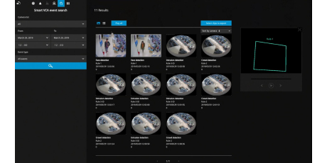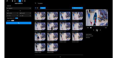 Los NVRs Core+ 3.0 son compatibles con la administración de alarmas y la búsqueda de eventos con la tecnología deep-learning de VIVOTEK, Smart VCA, y Smart 360 VCA. Las reglas e información de VCA, como el seguimiento de personas y la detección de movimiento, se pueden mostrar tanto en video en vivo, como en reproducción en el monitor del NVR. El usuario puede buscar por uno o varios tipos de eventos, reproducir eventos de alarmas y también exportar los videos de la busqueda.