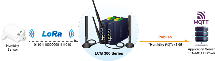 PLANET LCG-300W es una puerta de enlace LoRaWAN todo en uno de grado industrial con conectividad confiable para implementaciones de IoT. Con soporte para el protocolo LoRaWAN, ayuda a conectar la red inalámbrica LoRa a una red IP. La tecnología inalámbrica LoRa permite que los sensores transmitan datos a distancias extremadamente largas con un bajo consumo de energía. El LCG-300W es totalmente compatible con el protocolo LoRaWAN y admite la conexión con hasta 300 nodos finales. También proporciona bandas de frecuencia LoRaWAN estándar preconfiguradas para diferentes países. PLANET LCG-300W es la mejor opción para ayudarlo a promover la implementación de la red AIoT.