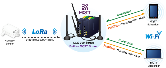 Además, el agente MQTT integrado en la serie LCG-300 facilita el análisis y la recopilación de datos, lo que permite a los usuarios obtener datos de forma rápida y cómoda. Esto es posible tanto a través del agente MQTT interno como de un agente MQTT externo. Esta funcionalidad ayuda a reducir los costos asociados con la construcción de servidores de red y minimiza la complejidad de la arquitectura de red.