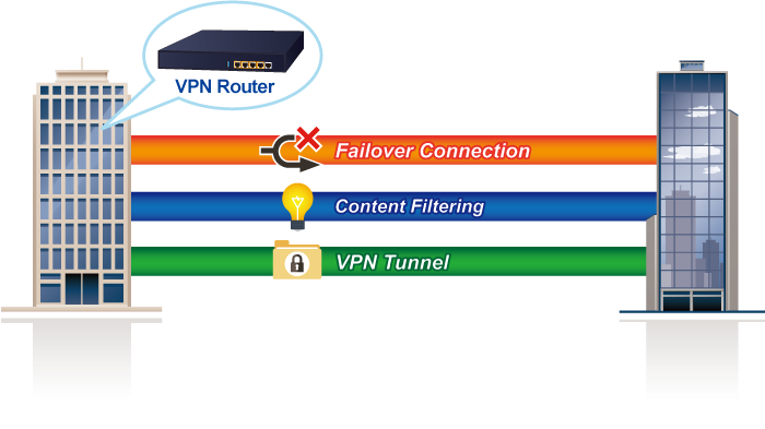 El VR-300 proporciona seguridad y privacidad de datos completas para acceder e intercambiar los datos más confidenciales, función VPN IPSec incorporada con cifrado DES/3DES/AES y autenticación MD5/SHA-1/SHA-256/SHA-384/SHA-512, y mecanismo de servidor GRE, SSL, PPTP y L2TP. La capacidad VPN completa en el VR-300 hace que la conexión sea segura, más flexible y más capaz.