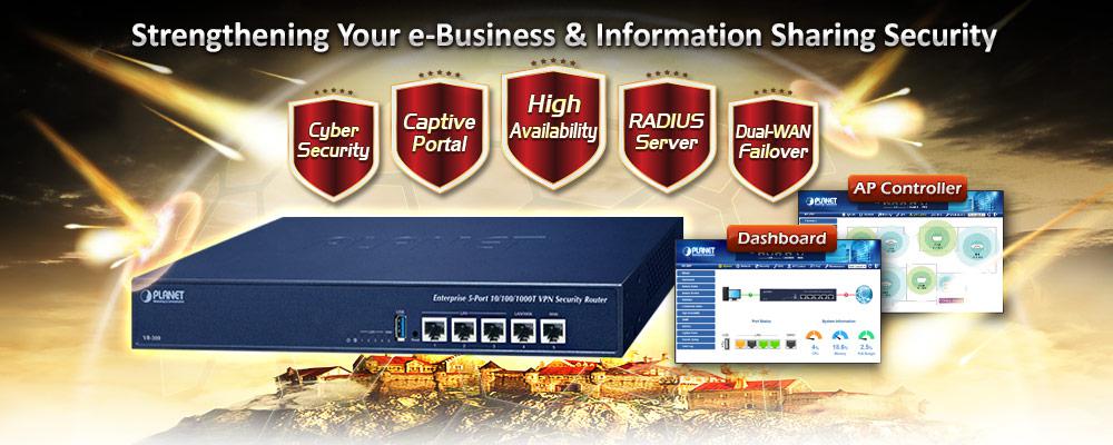 La innovación de Internet ha creado enormes oportunidades a nivel mundial para el comercio electrónico y el intercambio de información. Se ha vuelto esencial que las empresas se centren más en los problemas de seguridad de la red. La demanda de seguridad de la información se ha convertido en la principal preocupación de las empresas. Para satisfacer esta demanda, PLANET ha lanzado el enrutador de seguridad VPN VR-300, un dispositivo todo en uno que incluye varias categorías principales en sus implementaciones de seguridad de red: seguridad cibernética, protección de seguridad de firewall SPI, auditoría de políticas (filtrado de contenido, túnel VPN y filtrado MAC/IP), controlador de AP, portal cautivo, RADIUS y fácil administración (asistente de configuración, servidor DHCP y panel de control). Además, sus funciones de conmutación por error de WAN dual, equilibrio de carga saliente y alta disponibilidad pueden mejorar la eficiencia de la red, mientras que la interfaz basada en web proporciona una experiencia de usuario amigable y consistente.