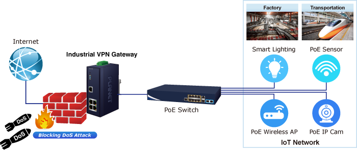 Hoy en día, la demanda de VPN se expande desde aplicaciones comerciales a muchas redes críticas en entornos hostiles. El IVR-100 será una de las soluciones ideales que brindan un alto nivel de inmunidad contra interferencias electromagnéticas y sobretensiones eléctricas intensas típicas de los entornos que se encuentran en plantas o en gabinetes de control de tráfico en las aceras. El IVR-100 puede funcionar de manera estable en un rango de temperatura de -40 a 75 grados C, lo que permite a los usuarios aplicar cómodamente el dispositivo en casi cualquier ubicación de la red. El IVR-100 también está equipado con una carcasa metálica compacta con estándar IP30 que permite el montaje en riel DIN o en la pared para un uso eficiente del espacio del gabinete.