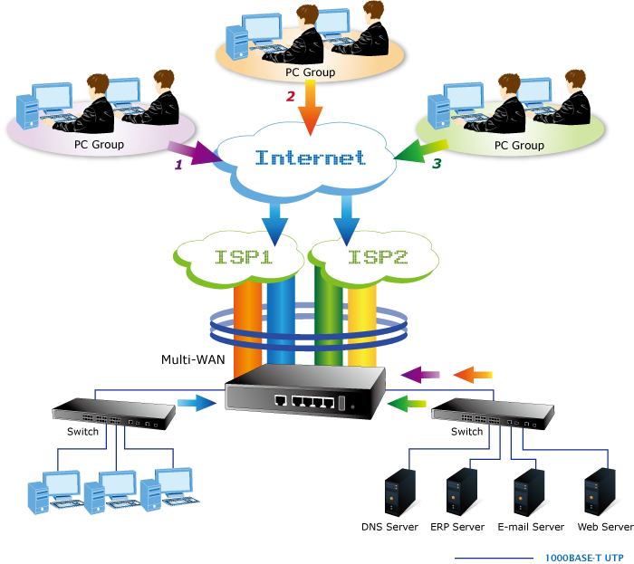 El IVR-100 puede conectar WAN duales con hasta dos ISP diferentes. Crea una conexión VPN estable y calificada para muchas aplicaciones importantes como VoIP, videoconferencia y transmisión de datos.
