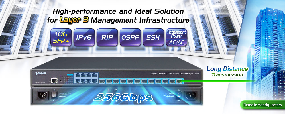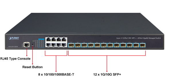 PLANET XGS-6350-12X8TR es un conmutador Gigabit gestionable de capa 3 que ofrece un rendimiento de alta densidad gracias a su enrutamiento de 10 Gigabit de capa 3 con 12 interfaces de fibra SFP+ y 8 interfaces Gigabit entregadas en un estuche resistente. El administrador puede elegir de forma flexible el transceptor SFP/SFP+ adecuado según la distancia de transmisión o la velocidad de transmisión necesaria para ampliar la red 10G de forma eficiente. Además, con una estructura de conmutación de 176 Gbps, el XGS-6350-12X8TR puede gestionar cantidades de datos extremadamente grandes en una topología segura que se vincula a la red troncal o a servidores de alta capacidad para empresas, centros de datos, campus, etc., donde se utilizan aplicaciones de VoIP, transmisión de vídeo y multidifusión.