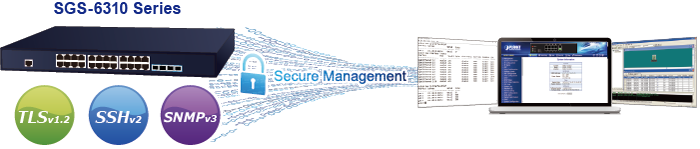 Además, la serie SGS-6310 ofrece una gestión remota segura al admitir la conexión SSHv1/v2 y SSLv3 que cifra el contenido del paquete en cada sesión.