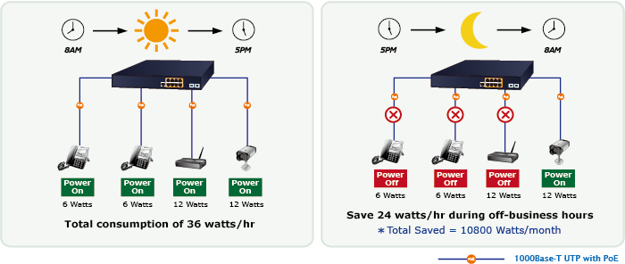 Además de usarse para vigilancia IP, el MGS-6320-8HP2X es ciertamente aplicable para construir cualquier red PoE, incluidas VoIP y LAN inalámbrica. Siguiendo la tendencia mundial de ahorro de energía y contribuyendo a la protección del medio ambiente en la Tierra, el MGS-6320-8HP2X puede controlar eficazmente la fuente de alimentación, además de su capacidad de proporcionar una alta potencia en vatios. La función de "programación de PoE" le ayuda a habilitar o deshabilitar la alimentación de energía PoE para cada puerto PoE durante intervalos de tiempo específicos y es una función poderosa para ayudar a las PYMES y empresas a ahorrar energía y presupuesto.