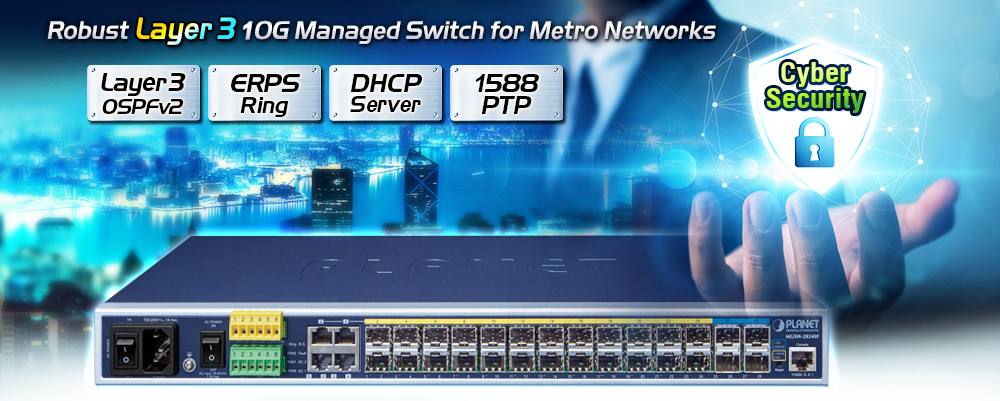 El MGSW-28240F también ofrece funciones de vigilancia DHCP, protección de origen IP e inspección ARP dinámica para evitar ataques de vigilancia IP y descartar paquetes ARP con direcciones MAC no válidas. Los administradores de red ahora pueden construir redes corporativas de alta seguridad con considerablemente menos tiempo y esfuerzo que antes.