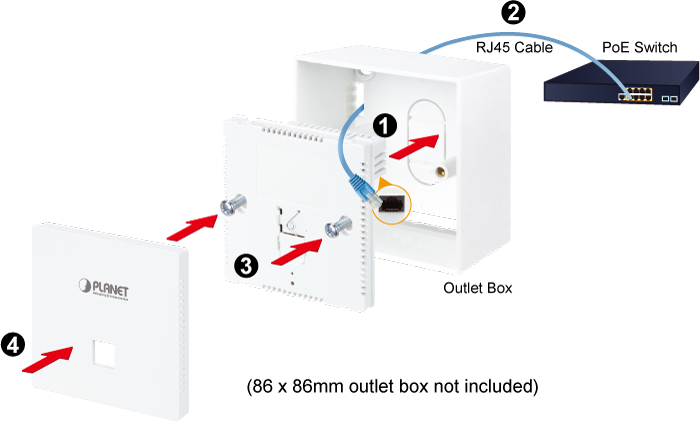 Con un atractivo diseño empotrado en la pared, el WDAP-W3000AX se puede instalar firmemente en la pared a través de la caja de salida europea estándar de 86 x 86 mm, lo que hace que el cableado eléctrico sea invisible y conveniente para la instalación en la habitación sin afectar el diseño interior original. Es ideal para hoteles, residencias, hospitales y más para establecer cualquier tipo de red inalámbrica.